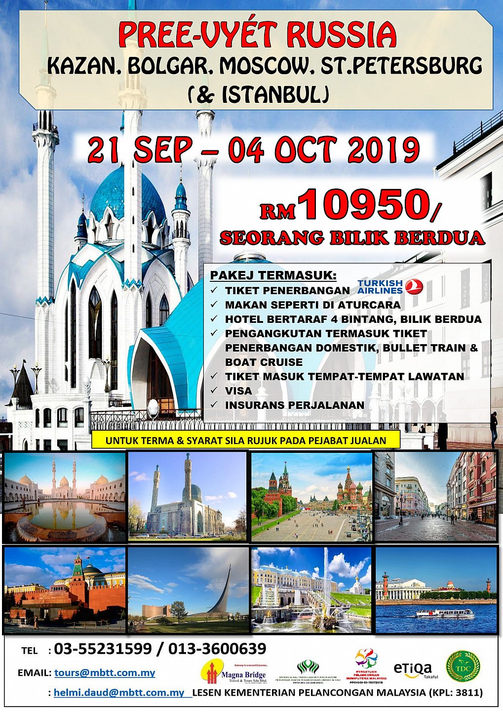 KUALA LUMPUR -> ISTANBUL -> KAZAN -> MOSCOW -> SAINT PETERSBURG -> ISTANBUL -> KUALA LUMPUR